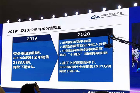 這種低迷態(tài)勢(shì)是否會(huì)延續(xù)到2020年?在日前舉行的2020中國(guó)汽車市場(chǎng)預(yù)測(cè)峰會(huì)上,中國(guó)汽車工業(yè)協(xié)會(huì)(簡(jiǎn)稱“中汽協(xié)”)方面表示,2020年預(yù)計(jì)銷量為2531萬(wàn)輛,降幅將所有收窄,在-2%左右,而正增長(zhǎng)拐點(diǎn)或出現(xiàn)在2023年。