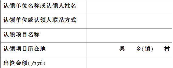 二、請認(rèn)領(lǐng)單位或認(rèn)領(lǐng)人填寫“扶貧項目認(rèn)領(lǐng)單”,并郵寄或傳真至有關(guān)縣(市、區(qū))扶貧辦。