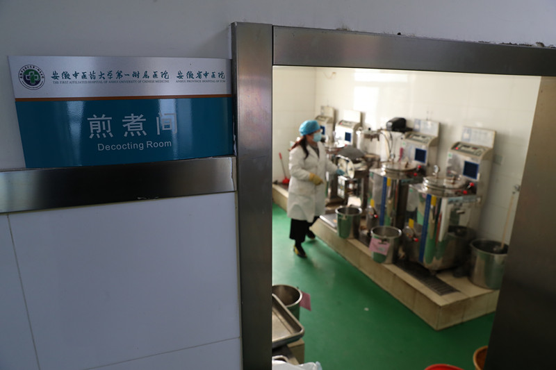 在安徽中醫(yī)藥大學(xué)第一附屬醫(yī)院煎藥中心,根據(jù)安徽省衛(wèi)生健康委的部署和要求,這家醫(yī)院承擔(dān)了合肥地區(qū)七家定點(diǎn)醫(yī)療機(jī)構(gòu)新冠肺炎中藥治療湯劑的調(diào)制和配送任務(wù)。