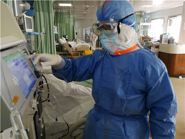 安徽首批支援湖北醫(yī)療隊(duì)員劉俊正在照顧病例(央廣網(wǎng)發(fā) 安徽援助武漢醫(yī)療隊(duì)供圖)