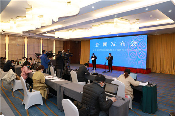 與時間賽跑,安徽抗疫新聞發(fā)布會站著講(央廣網(wǎng)發(fā) 劉煒鑫 攝)