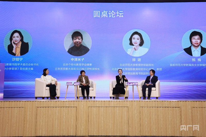 在10月25日舉行的圓桌論壇環(huán)節(jié),由北京明遠教育書院學術委員會秘書長沙培寧主持,中澤米子、熊梅與北京師范大學教育學部副部長、北京師范大學國際教育研究中心主任滕珺,就“普通中小學如何開展國際理解教育”等議題進行分享。