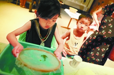 小朋友在體驗花草紙團扇制作 本報記者方非 攝