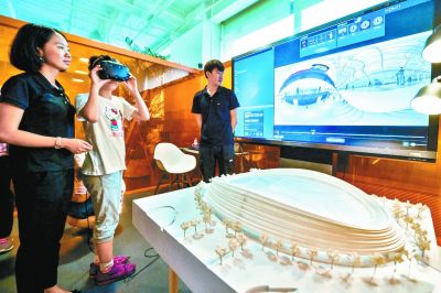 在實驗劇場,觀眾欣賞了一場全息芭蕾舞劇,真人與虛擬現(xiàn)實融為一體,虛實難辨,美輪美奐。最熱鬧的當(dāng)屬能夠和高科技設(shè)備交互體驗的展位,改革開放AR拍照合影、VR動感單車、體感共舞系統(tǒng)、滑雪演練平臺等展位前,觀眾們排起了隊紛紛來嘗鮮。“來自北京國企的這些現(xiàn)代前沿顯示技術(shù)太驚艷了!”一位來自埃及的留學(xué)生不時點頭稱贊。