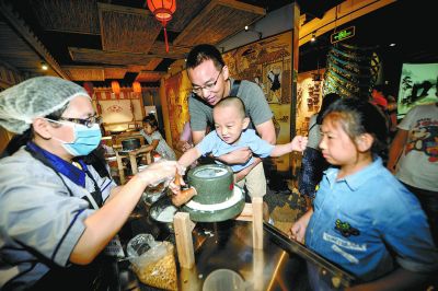 昨天,航天科工二院30余位職工和子女來到北京市腐乳科普館,了解“王致和”腐乳的歷史趣聞、腐乳的分類、加工工藝等科普知識。本報記者 潘之望攝