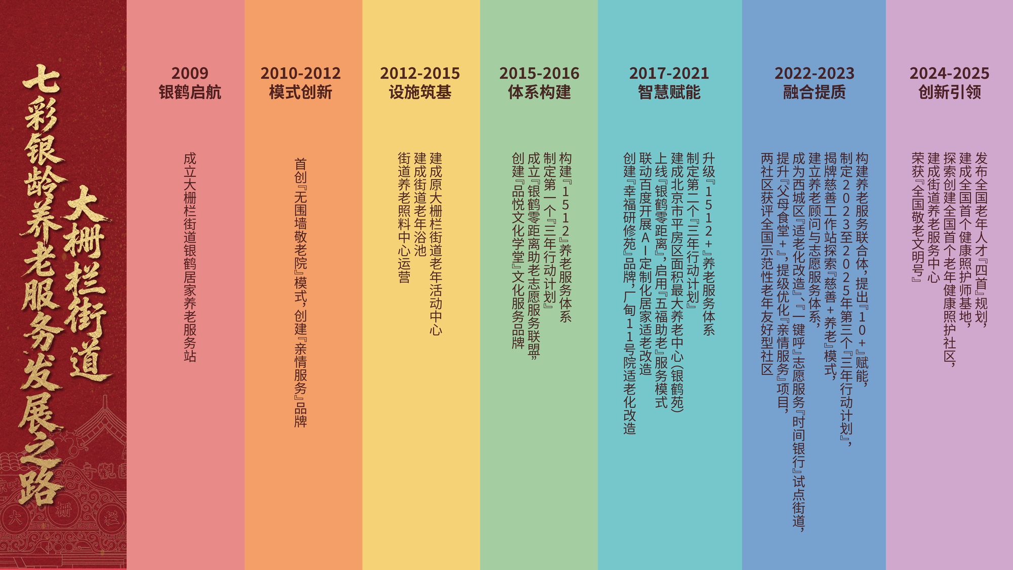 近年來,大柵欄街道以“七有”“五性”為根本遵循,積極構(gòu)建“養(yǎng)老服務聯(lián)合體”,創(chuàng)新踐行“10+”賦能“大養(yǎng)老”理念,率先推出全國“四首”養(yǎng)老規(guī)劃,全面推進“老年人健康照護社區(qū)建設,憑借扎實的工作成效榮獲“全國敬老文明號”稱號,逐步探索出一條從“紅色銀鶴啟航”到“紫色創(chuàng)新引領”的“七彩銀齡”發(fā)展路徑,為區(qū)域養(yǎng)老服務高質(zhì)量發(fā)展提供了“大柵欄方案”。