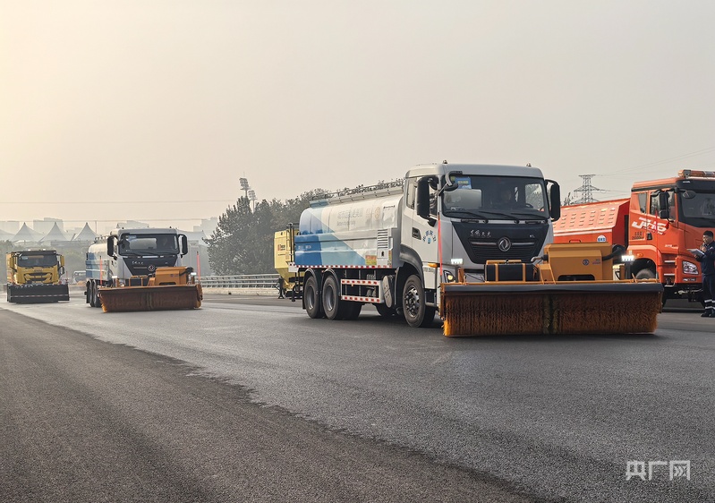 演練共設(shè)5個(gè)科目,模擬不同場(chǎng)景下作業(yè)方式,分別是長(zhǎng)安街除雪作業(yè)、主路架空橋區(qū)除雪作業(yè)、環(huán)路主路除雪作業(yè)、輔路除雪作業(yè)、限高限寬道路除雪作業(yè)。