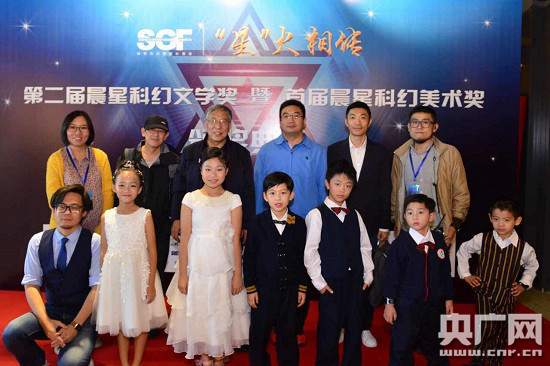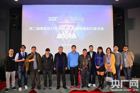 央廣網(wǎng)深圳11月27日消息(記者 于揚)11月26日下午,由中國首個科幻公益基金——深圳市科學(xué)與幻想成長基金分別與深圳市南山區(qū)科學(xué)技術(shù)協(xié)會、深圳市福田區(qū)文化體育局聯(lián)合主辦的第二屆“晨星”科幻文學(xué)獎、第一屆“晨星”科幻美術(shù)獎頒獎典禮在深圳市市民中心B座,工業(yè)展覽館多功能廳隆重舉行。頒獎典禮以“‘星’火相傳”作為主題,在頒獎的過程中回顧了中國科幻創(chuàng)作和科幻產(chǎn)業(yè)的發(fā)展歷程。深圳市福田區(qū)委副書記、社工委主任余智晟,南山科協(xié)常務(wù)副主席張漢國出席了頒獎典禮。深圳市科學(xué)幻想成長基金負(fù)責(zé)人介紹,今年的兩項“晨星”科幻大獎在保持自身公益性、繼續(xù)資助未完成創(chuàng)作的長篇科幻小說作品的特色基礎(chǔ)上,進(jìn)一步擴大了賽事規(guī)模、提高了獎金和資助金總額。全部16個獎項共計頒發(fā)獎金30.5萬元、資助金8萬元,無論是獎項規(guī)模還是獎金總額都比去年提高了一倍有余。