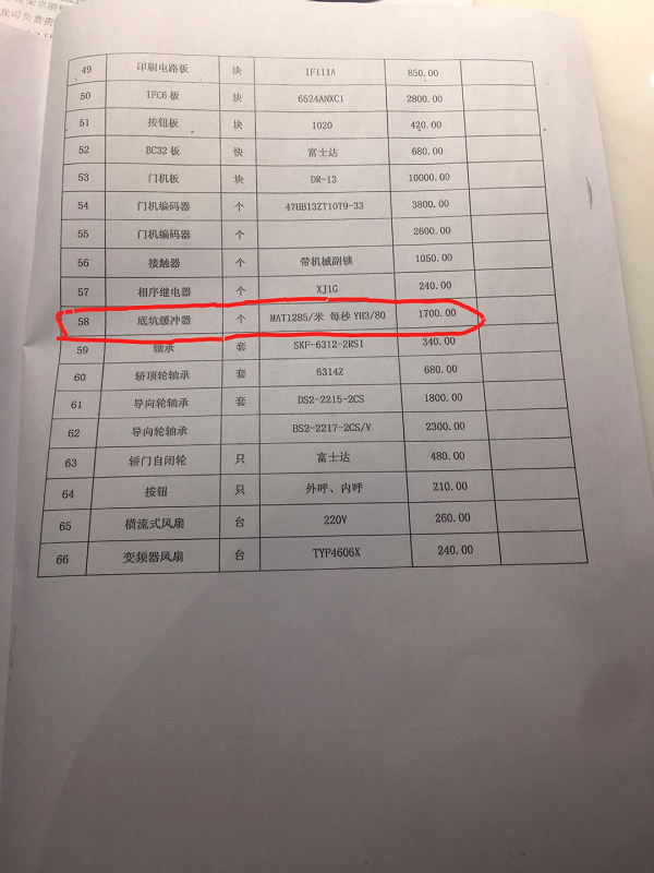 去年修電梯,“華升富士達”給的報價單,同一個零件,型號完全相同,同一家公司,價格相差一倍