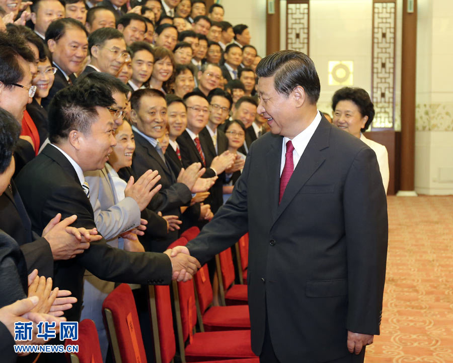 上午9時(shí)30分許,習(xí)近平等領(lǐng)導(dǎo)同志走進(jìn)人民大會(huì)堂河北廳,來到代表們中間,同大家親切握手,詢問他們工作和生活情況,并同大家合影留念。