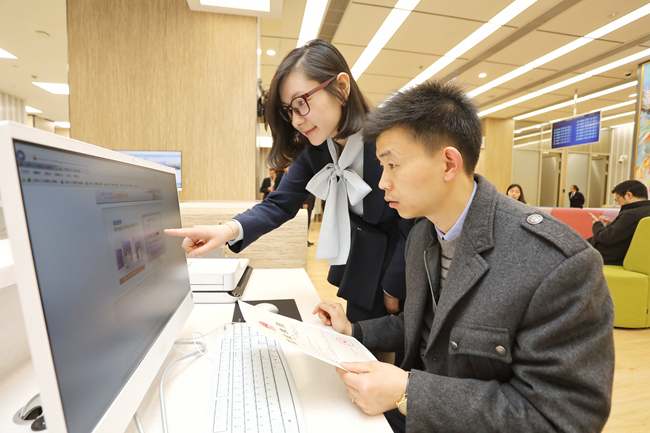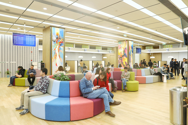 在上海浦東國際人才港,人們在大廳里等待辦理手續(xù)。(黃日閱 攝)