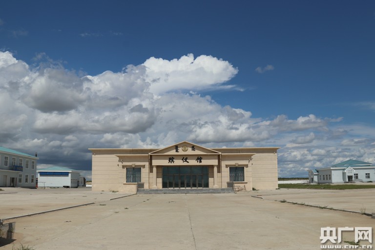 當(dāng)記者來到位于新左旗阿木古郎鎮(zhèn)的現(xiàn)場時卻看到,原本治理完成的草場上,建起了一座殯儀館,殯儀館旁邊還有空蕩蕩的停車場,灰色的水泥地面與盛夏的草原格格不入。停車場一輛車也沒有,從高處看,殯儀館和停車場就像草原上的“斑禿”。