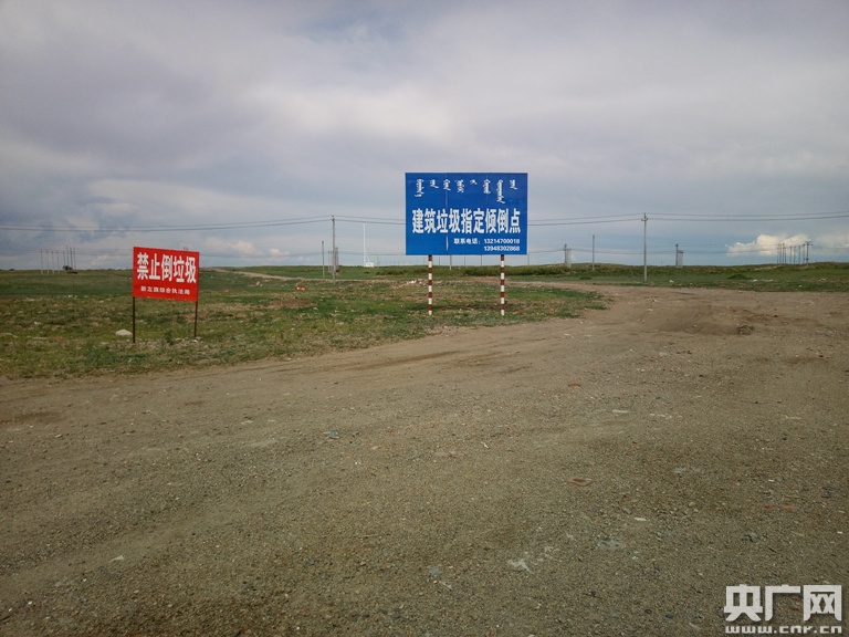 記者注意到,在建筑垃圾場的入口,立著一藍(lán)一紅兩塊牌子。紅牌子是新左旗綜合執(zhí)法局寫的“禁止倒垃圾”,藍(lán)牌子是填埋場寫的“建筑垃圾指定傾倒點”,到底能不能倒垃圾?新巴爾虎左旗綜合執(zhí)法局局長告訴記者,生活垃圾場是有審批手續(xù)的,至于建筑垃圾場,是很多年前形成的,現(xiàn)在已經(jīng)不用了。