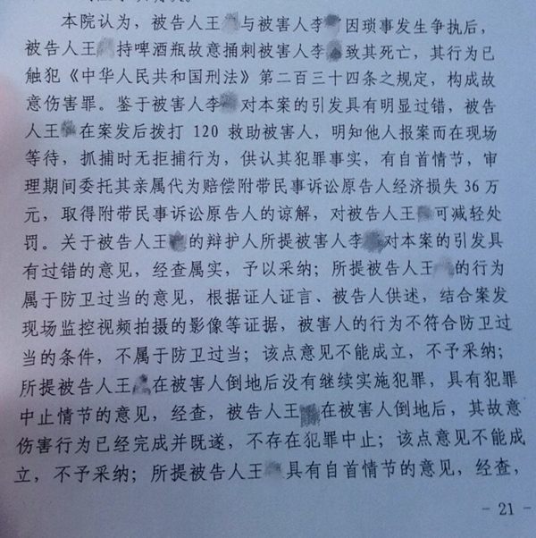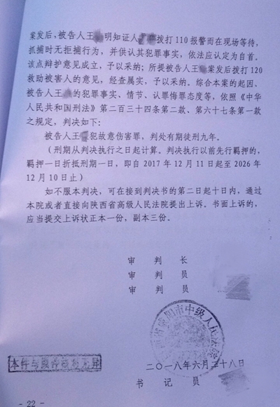 2018年6月,案件一審宣判:被告人王某犯故意傷害罪,判處有期徒刑九年。王某的家人無法接受這個(gè)結(jié)果,提起上訴。