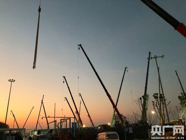 僅僅昨天24個小時之內(nèi),同時在廠內(nèi)作業(yè)的大小工程車輛一共達到了600多臺,在這樣小的一個區(qū)間內(nèi)同時開工,確實給整個交通協(xié)調(diào)帶來非常大的壓力。中建鐵投路橋有限公司總經(jīng)理張帆介紹,在短時間內(nèi)完成這樣的工作,對于各個工作組之間的統(tǒng)籌安排需要精細(xì)到分鐘。工地內(nèi)的車多人雜,所以一定要保障人員的安全和工地內(nèi)交通線路的暢通。張帆說:“這里面這么大的人流,這么多的車輛來往,交通協(xié)調(diào)者,包括安保和防疫,我們這個組有接近80多人在這里管理。對于車輛的行走路線等都作了部署和安排。”