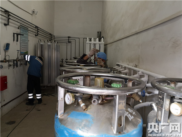 工人們在緊張施工,改造供氧設(shè)施(中央廣播電視總臺央廣記者 肖源 攝)