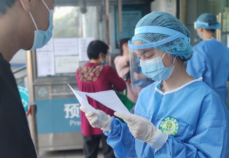 現(xiàn)場的志愿者主要負責接種點和采樣點現(xiàn)場秩序,包括測溫、查看行程記錄、分流群眾、協(xié)助醫(yī)務人員開展核酸采樣和接種疫苗。