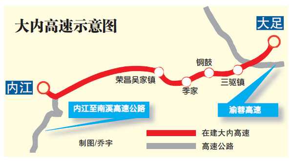 12月25日,重慶大足至四川內(nèi)江高速公路重慶段正式開工,建設(shè)工期3年。該高速建成通車后,經(jīng)渝蓉高速、大內(nèi)高速到內(nèi)江,比走成渝高速預(yù)計(jì)可節(jié)約半小時(shí)以上車程。