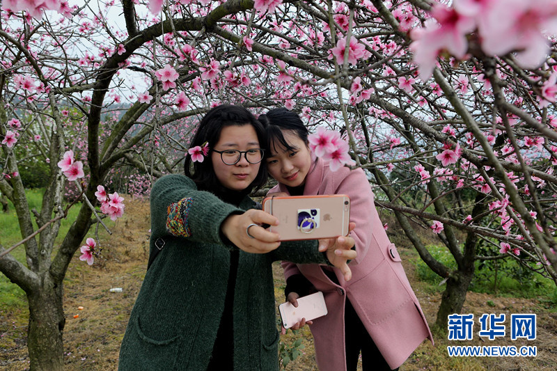游客在桃花林中合影留念。 近年來(lái),巫山縣利用長(zhǎng)江兩岸的土壤特性,在山脊的高山帶發(fā)展生態(tài)林,中山帶發(fā)展脆李、油桃等小水果,低山帶發(fā)展種植柑橘產(chǎn)業(yè)。每年春天,長(zhǎng)江夾岸漫山遍野開(kāi)滿李花,成為一道美麗的生態(tài)防線。