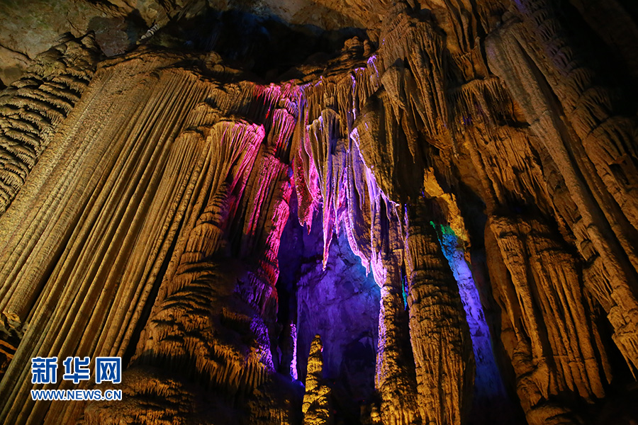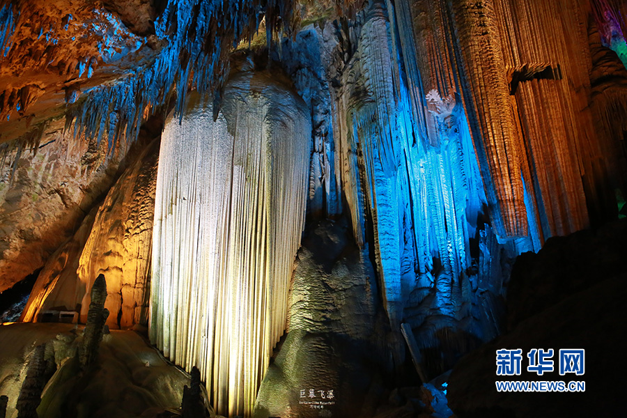 芙蓉洞內(nèi)“巨幕飛瀑”景觀。(新華網(wǎng)發(fā) 黃勇攝) -
