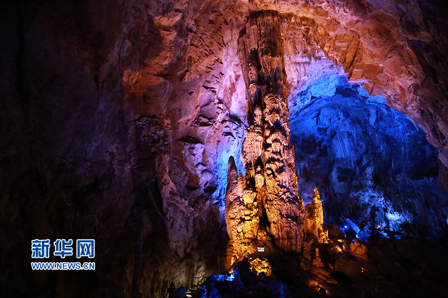 芙蓉洞內(nèi)“擎天玉柱”景觀。(新華網(wǎng)發(fā) 黃勇攝) -