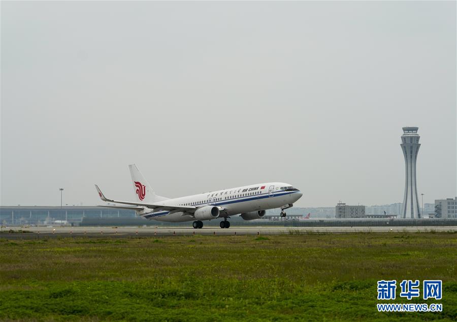 3月11日,一架國航客機從重慶江北國際機場的跑道上起飛。