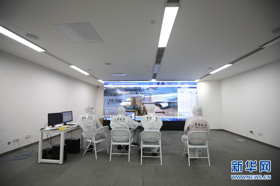重慶江北機(jī)場海關(guān)新冠肺炎疫情衛(wèi)生檢疫現(xiàn)場指揮中心。新華網(wǎng)發(fā)(施漢瓊 攝)