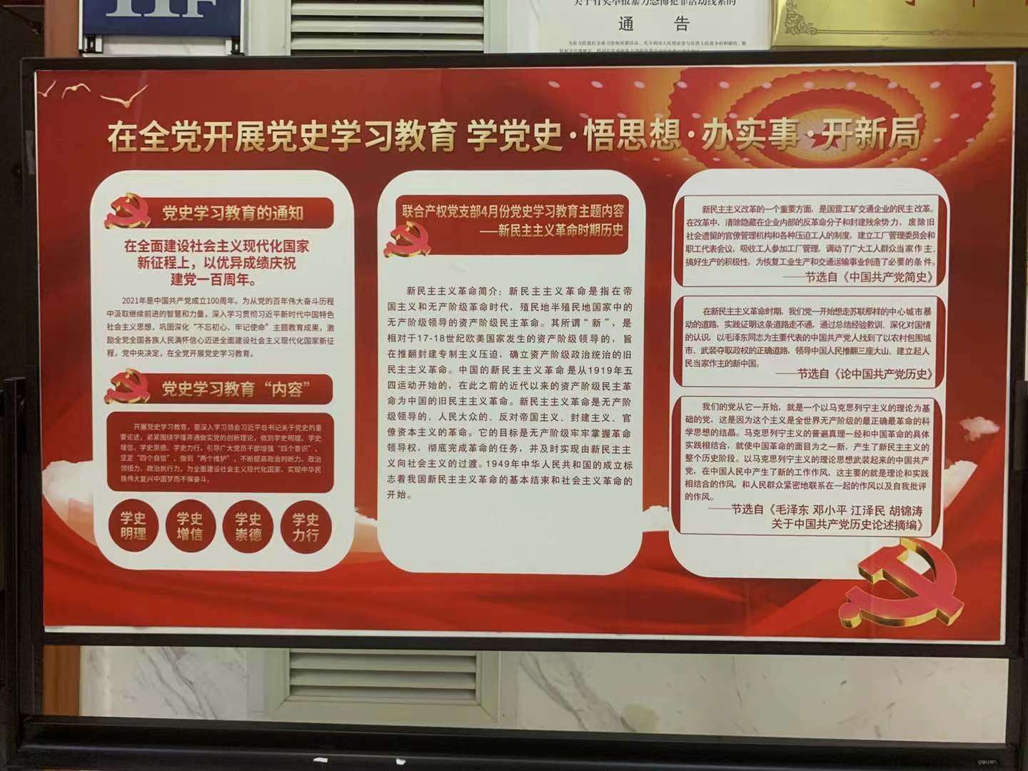 自黨史學習教育開展以來,聯(lián)合產(chǎn)權黨支部通過制定學習計劃、制作月度學習宣傳欄、組織黨員定期學習討論等方式持續(xù)推進學習教育工作。下一步,聯(lián)合產(chǎn)權黨支部將繼續(xù)深入開展黨史學習教育主題活動,切實把黨史學習教育與總結經(jīng)驗、觀照現(xiàn)實、推動工作結合起來,切實做到學黨史、悟思想、辦實事、開新局,鍛造“不折不扣、不偏不倚”的政治執(zhí)行力,以優(yōu)異成績迎接建黨一百周年。