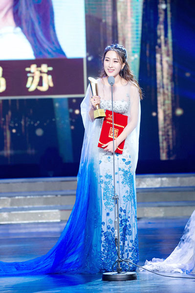 當(dāng)晚馬蘇以一身白藍(lán)漸變禮服亮相,胸前點(diǎn)鉆搭配仙女系花辮盤發(fā),仙氣十足。憑借在電視界出色的表現(xiàn),馬蘇被頒予“中國電視好演員”綠寶石獎(jiǎng)。接過獎(jiǎng)杯時(shí)馬蘇感嘆:“我之前也得過一些獎(jiǎng)項(xiàng),但是尤其喜歡'好演員'這個(gè)獎(jiǎng),因?yàn)檎琰S宏老師所說'好演員真的好難做'。感謝視協(xié)的認(rèn)可,我會(huì)以此鼓勵(lì)自己,把成為一名好演員作為終生奮斗的目標(biāo)。"同時(shí),馬蘇承諾會(huì)接拍好戲,塑造有靈魂的角色,給觀眾傳達(dá)真善美和正能量。