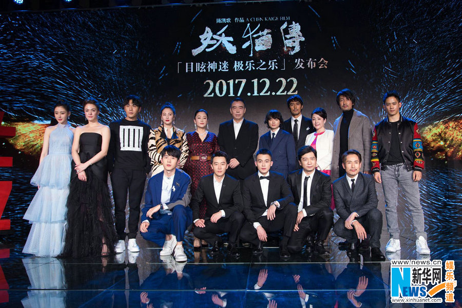 由陳凱歌導(dǎo)演的賀歲奇幻鉅制《妖貓傳》,于12月17日舉行“目眩神迷 極樂之樂”全球首映發(fā)布會,導(dǎo)演陳凱歌,制片人陳紅攜主演黃軒、染谷將太、張雨綺、秦昊、張榕容、張魯一、劉昊然、歐豪、阿部寬、松坂慶子、田雨、成泰燊、李淳,特別出演張?zhí)鞇壅鸷沉料,空前龐大陣容共同開啟2017最受期待的盛唐奇觀。