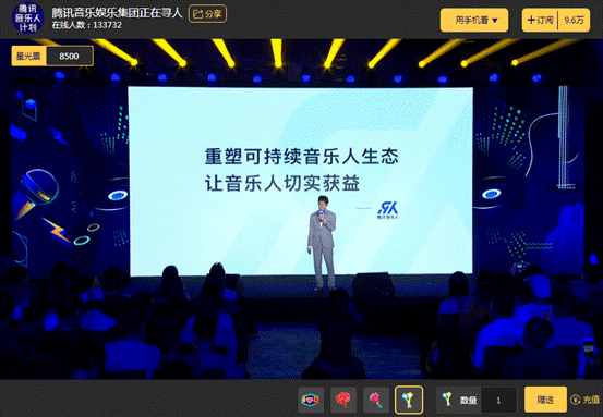 解決困境并非一朝一夕的口頭承諾。彭迦信指出,騰訊音樂娛樂集團在盜版橫行的年代就已經(jīng)開始堅持正版化,并已積累十多年的精耕細作經(jīng)驗。集團旗下酷狗音樂、QQ音樂、酷我音樂、酷狗直播、5Sing、全民K歌六大音樂平臺上已經(jīng)駐留了相當多的音樂人,為平臺上的音樂人發(fā)布超過10萬張專輯,但彭迦信表示“還遠遠不夠”。之前六大平臺雖然已積累出一定成績,但長期彼此獨立,并沒有充分發(fā)揮平臺優(yōu)勢!跋Mㄟ^打通六大平臺的資源,最大化地解決音樂人的痛點,為音樂人帶來更多實際化的幫助!迸礤刃胚表示,騰訊音樂娛樂集團將為音樂人提供作品發(fā)行、宣傳推廣、數(shù)據(jù)管理、演出支持、作品收益、版權管理、權利保護甚至教育培訓服務,一站式解決音樂人的痛點需求,并且“未來三年內(nèi)不計成本支持原創(chuàng)音樂人”,為原創(chuàng)音樂人提供5億的收入,讓平臺以及平臺上的粉絲成為好音樂的伯樂。