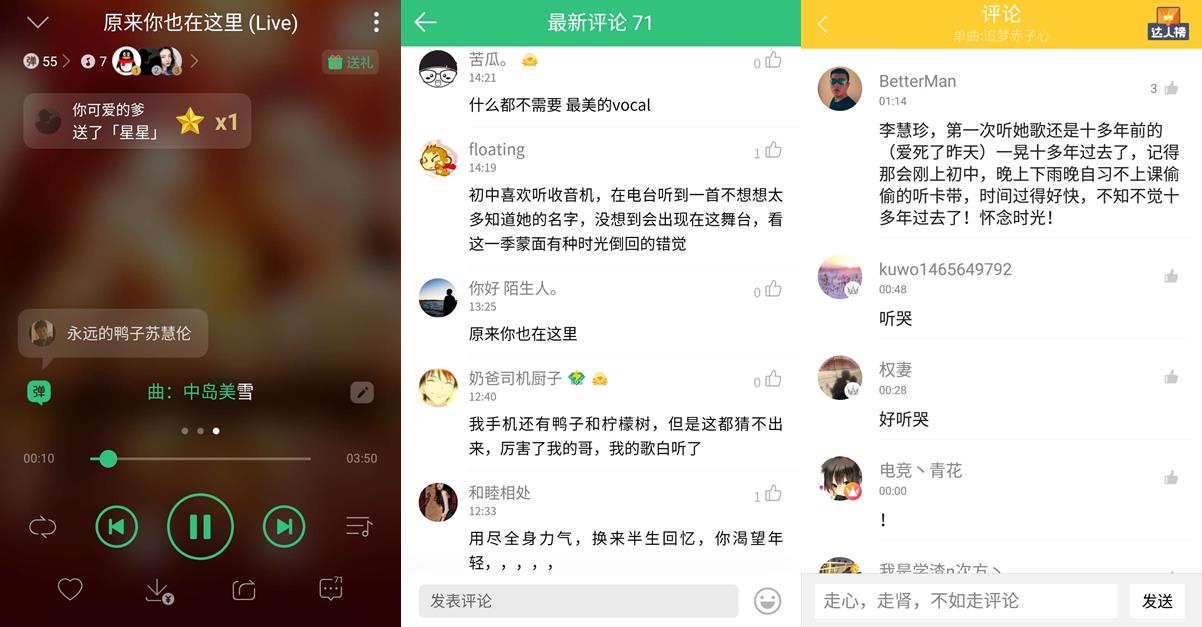 此外,代表一段華語經(jīng)典時(shí)代、好久不見的李慧珍和蘇慧倫的成功揭面也被網(wǎng)友稱“有時(shí)光倒回的錯(cuò)覺”。重新拿起話筒,李慧珍用一首《追夢(mèng)赤子心》訴說了淡出歌壇的這些年是如何因?yàn)橐魳范鴪?zhí)著重生,歌聲中飽滿的能量與感動(dòng),也觸動(dòng)到了大家內(nèi)心的柔軟,更有酷我音樂網(wǎng)友追憶起第一次聽李慧珍歌曲的情景,感嘆時(shí)光流逝,關(guān)于李慧珍的相關(guān)歌單也來到了QQ音樂的專題推薦。