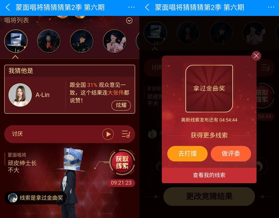當(dāng)然,在感動(dòng)與感懷的濃厚氛圍下,本期節(jié)目的燒腦核心元素仍然始終貫穿始終。除了上期節(jié)目的“遺珠”“冷場(chǎng)王駕到”,補(bǔ)位唱將“頑皮紳士長不大”的真實(shí)身份也引起了騰訊音樂娛樂網(wǎng)友們的熱烈討論,酷狗音樂也在競(jìng)猜專區(qū)給到了“拿過金曲獎(jiǎng)”的獨(dú)家線索。而她們究竟是誰?下期節(jié)目又會(huì)以什么樣的音樂來“迷惑眾生”呢?本周日晚,QQ音樂、酷狗音樂、酷我音樂繼續(xù)與你猜猜猜!