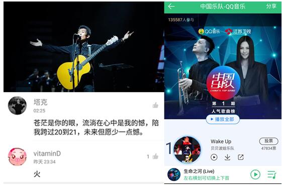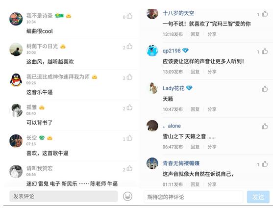 在首期節(jié)目中,樂隊(duì)推薦人陳偉倫帶著自己的樂隊(duì)、以一首《如夢令》先行東道之禮,中西樂器加上古風(fēng)與電音的碰撞,為李清照的這首經(jīng)典詞牌注入了全新的生命力。而其強(qiáng)大的音樂創(chuàng)造力也讓不少網(wǎng)友表示欽佩,在QQ音樂更有“技術(shù)帝”犀利指出這首歌所融入的“迷幻、雷鬼、電子、新民樂”四種編曲元素,表示陳老師太牛了。隨后,由化身“中國樂隊(duì)音樂調(diào)頻”DJ的譚維維親自找尋樂手的尼瑪樂隊(duì)用藏語驚艷開唱。在傳承西藏傳統(tǒng)音樂的基礎(chǔ)上賦予了音樂現(xiàn)代化、國際化的色彩,尼瑪樂隊(duì)的《生命之河》無論是在歌藝還是在表演形式上都完美詮釋了“民族的就是世界的”。對于這樣一首洗滌心靈之作,酷狗音樂的網(wǎng)友也盛贊“雪山之下,天籟之音”,“這聲音就像大自然在訴說自己”。