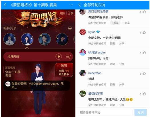 作為史上名字最長的唱將,港樂女伶“去游樂場散步才是正經(jīng)事”陳慧嫻的成功揭面也在蒙面舞臺上定格經(jīng)典,一曲《你怎么舍得我難過》在QQ音樂、酷狗音樂、酷我音樂的節(jié)目人氣專榜均成功闖入前三,并在酷狗音樂穩(wěn)坐TOP 1!半p陳”的到來,掀起了網(wǎng)友們對當(dāng)年樂壇黃金時代的集體感懷,并通過QQ音樂貢獻(xiàn)大量彈幕,表示“天后就是不同”。