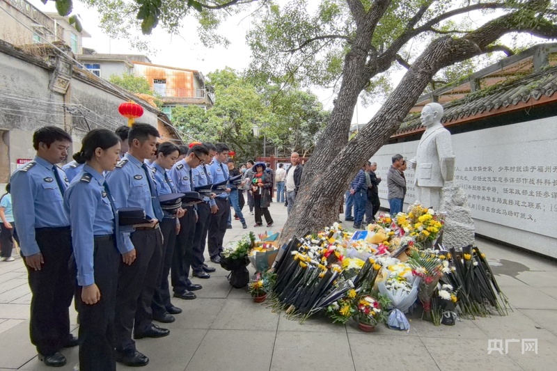 民警們向吳石將軍致敬(央廣網(wǎng)發(fā) 鄭博文 攝)