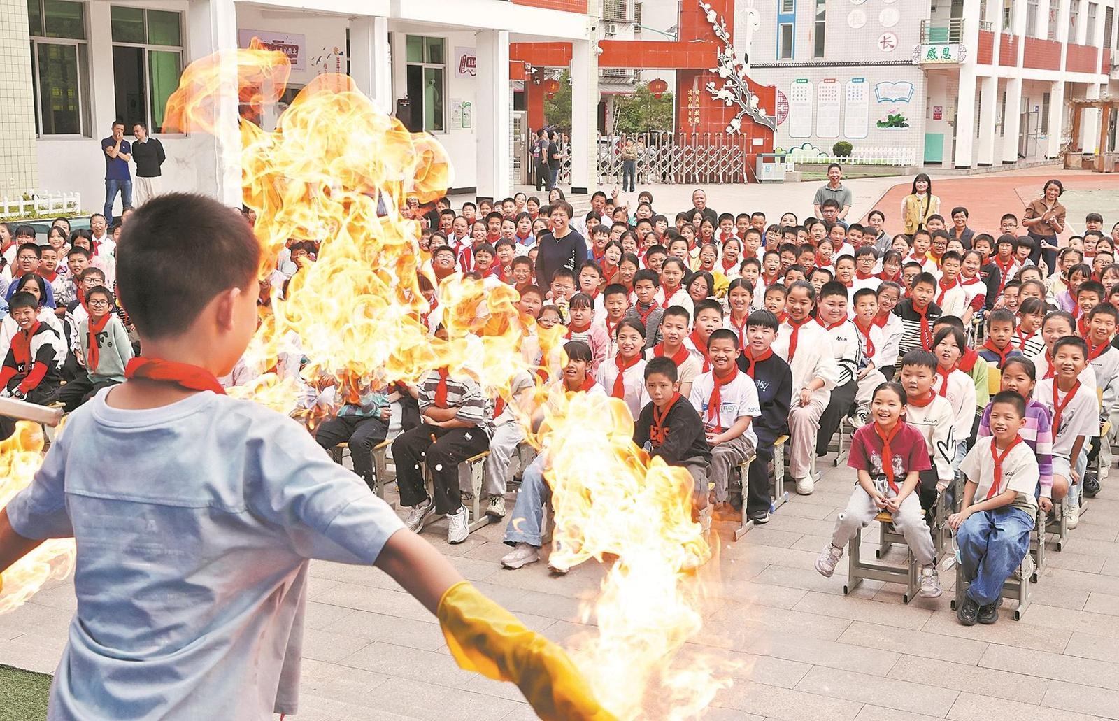 10月30日,永春縣玉斗中心小學的孩子們感受科學秀帶來的樂趣。當日,由團市委舉辦的“情暖童心”流動少年宮暨希望工程一堂課走進永春縣玉斗中心小學,本次流動少年宮以“紅領(lǐng)巾心向黨,科技筑夢強國”為主題,以紅色教育為引領(lǐng),將愛國主義教育與科技創(chuàng)新實踐相結(jié)合,讓青少年在動手實踐中感受科技的魅力,在文化熏陶中堅定理想信念;顒颖小肮、普惠、優(yōu)質(zhì)”的理念,以“一堂課”為載體,將優(yōu)質(zhì)的科技、藝術(shù)教育課程送到鄉(xiāng)村學校,助力教育公平,傳遞社會關(guān)愛與溫暖。(張九強 莊小麗 攝)