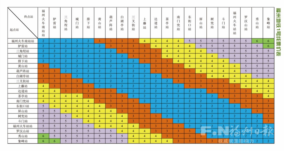 12月5日,微博上熱傳一張“福州軌道交通1號(hào)線票價(jià)表”,顯示全程票價(jià)為6元。記者向市地鐵公司核實(shí)得知,雖然該表格不是官方發(fā)布,但票價(jià)經(jīng)核實(shí)確認(rèn)無(wú)誤。