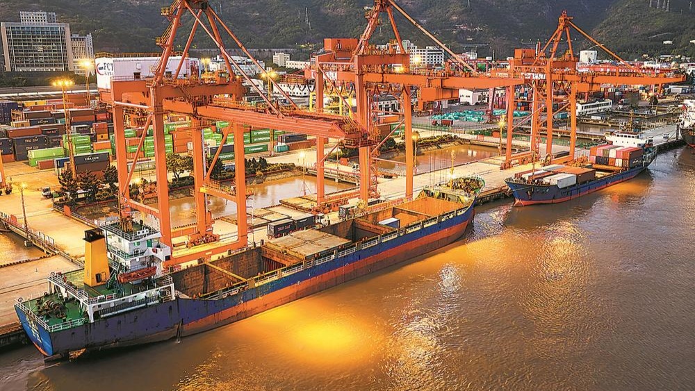 福州青州集裝箱碼頭燈火通明 貨輪有序作業(yè)