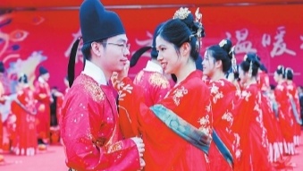 28日,2025年“有福之州 溫暖榕城”集體婚禮在福州上下杭?xì)v史文化街區(qū)舉行。