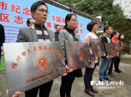 12月4日,福州市委文明辦、團(tuán)市委在鼓樓區(qū)鼓東街道中山社區(qū)聯(lián)合舉辦紀(jì)念“12·5國際志愿者日”暨社區(qū)志愿服務(wù)聯(lián)盟成立儀式活動;顒蝇F(xiàn)場,主辦方為12個(gè)“福州市志愿服務(wù)示范社區(qū)”授牌,并為“綠化福州”志愿服務(wù)隊(duì)授旗。各城區(qū)志愿者代表參觀了志愿服務(wù)示范社區(qū)風(fēng)采展,觀摩“學(xué)雷鋒一條街”現(xiàn)場志愿服務(wù)活動。