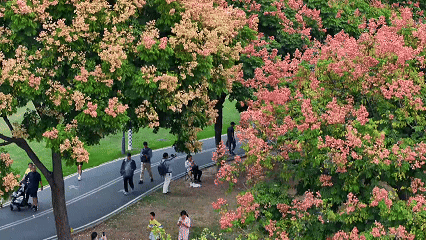 福建福州山水相依,入秋以來,從閩江兩岸到大大小小的串珠公園,一幅幅秋日畫卷次第鋪展。