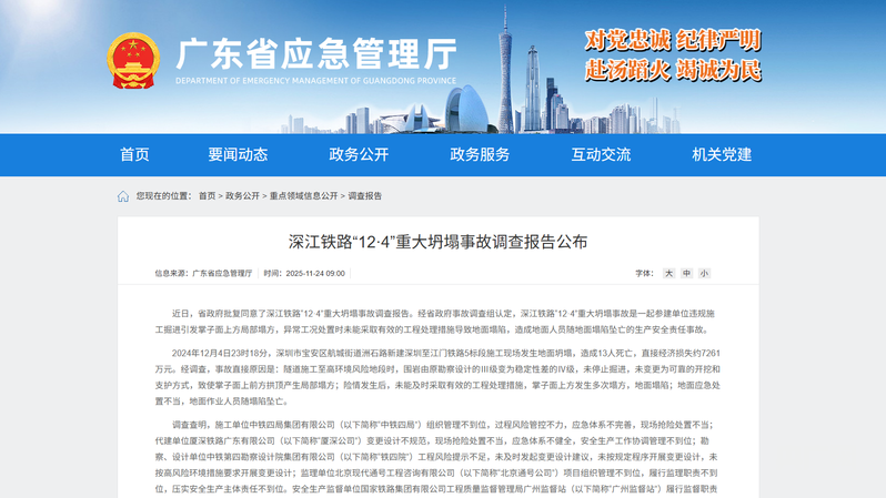 深江鐵路“12·4”重大坍塌事故調(diào)查報告公布