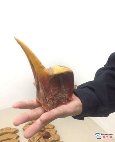 在繳獲走私物品當(dāng)中,盔犀鳥頭骨原產(chǎn)東亞熱帶雨林,因骨質(zhì)地堅實美觀,成為國內(nèi)珍貴的工藝品制作材料,價格甚至超過犀角、象牙?B是華盛頓公約一級保護(hù)物種,嚴(yán)格禁止其國際貿(mào)易。廣東海警表示,將在下階段加強(qiáng)轄區(qū)海域管控力度,對重點水域?qū)嵤?4小時不間斷持續(xù)巡航和檢查,嚴(yán)防各類走私偷渡案件發(fā)生。
