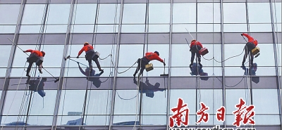 外立面為玻璃幕墻的,至少每年清洗一次。 南方日報記者 魯力 攝