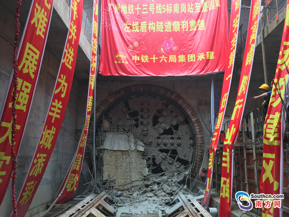 據(jù)南方網(wǎng)報(bào)道,繼上周首批列車在大連正式交付廣州地鐵后,十三號(hào)線首期又迎來另一重大節(jié)點(diǎn)工程:5月23日下午,十三號(hào)線首期【夏園—南崗】區(qū)間左線盾構(gòu)機(jī)經(jīng)過499天的掘進(jìn)后,在夏園站成功破墻而出。至此,該線路全線隧道貫通。