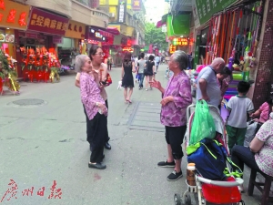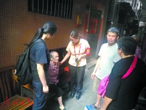 冼婆婆每說到一個(gè)地方,他們?nèi)齻(gè)人就一路陪她著來到那個(gè)地方,希望她回憶起更多細(xì)節(jié),就這樣,這群臨時(shí)組成的“孫子”“孫女”陪著冼婆婆一條又一條街巷、一個(gè)又一個(gè)小區(qū)尋找回家的路,上社、棠下、棠東……當(dāng)他們走進(jìn)上社牌坊。很幸運(yùn),他們遇見了冼婆婆的街坊,跟街坊說清來由后,街坊很熱情地協(xié)助打電話聯(lián)系冼婆婆的家屬。冼婆婆的兒子潘先生和孫女聞訊趕來,冼婆婆終于與家人團(tuán)聚了。