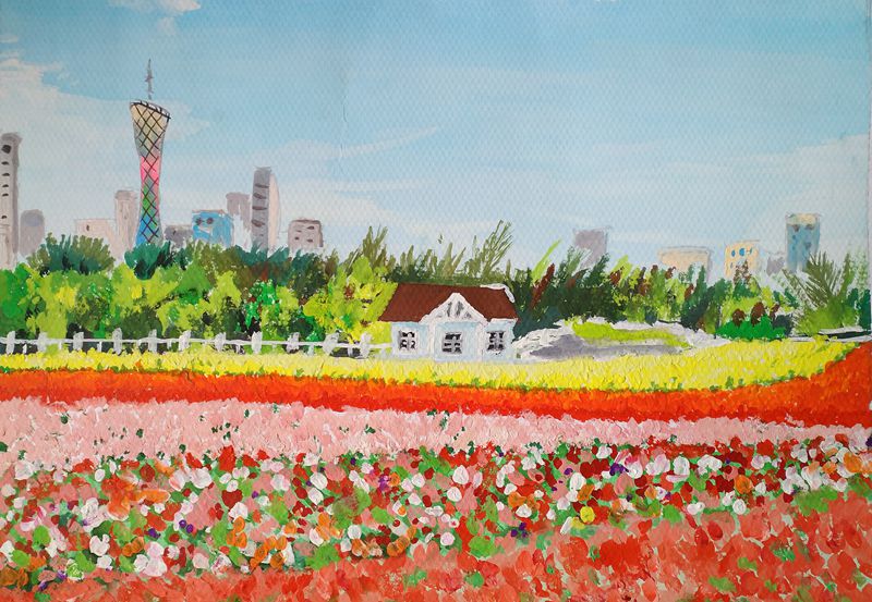 圖為:花都區(qū)花東鎮(zhèn)大塘中學(xué) 八(1)班 佟俊彬 作品名稱《美麗花城》