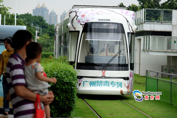 南方網(wǎng)訊 6月7日上午,廣州“禁毒專列”在廣州有軌電車廣州塔站上線,拉開了廣州今年開展“6.26”國(guó)際禁毒日系列活動(dòng)的序幕。