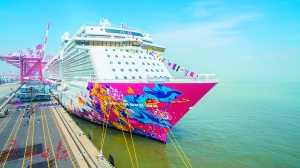 廣州以郵輪旅游為代表的旅游新業(yè)態(tài)發(fā)展迅速,圖為停靠在南沙港的“云頂夢(mèng)號(hào)”郵輪。廣州日?qǐng)?bào)全媒體記者莊小龍 攝